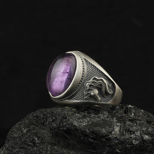Elegant and timeless, this silver gemstone ring features a stunning stone set...